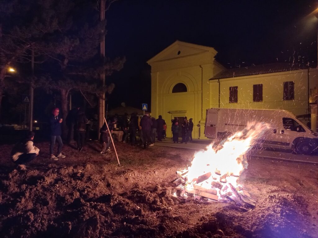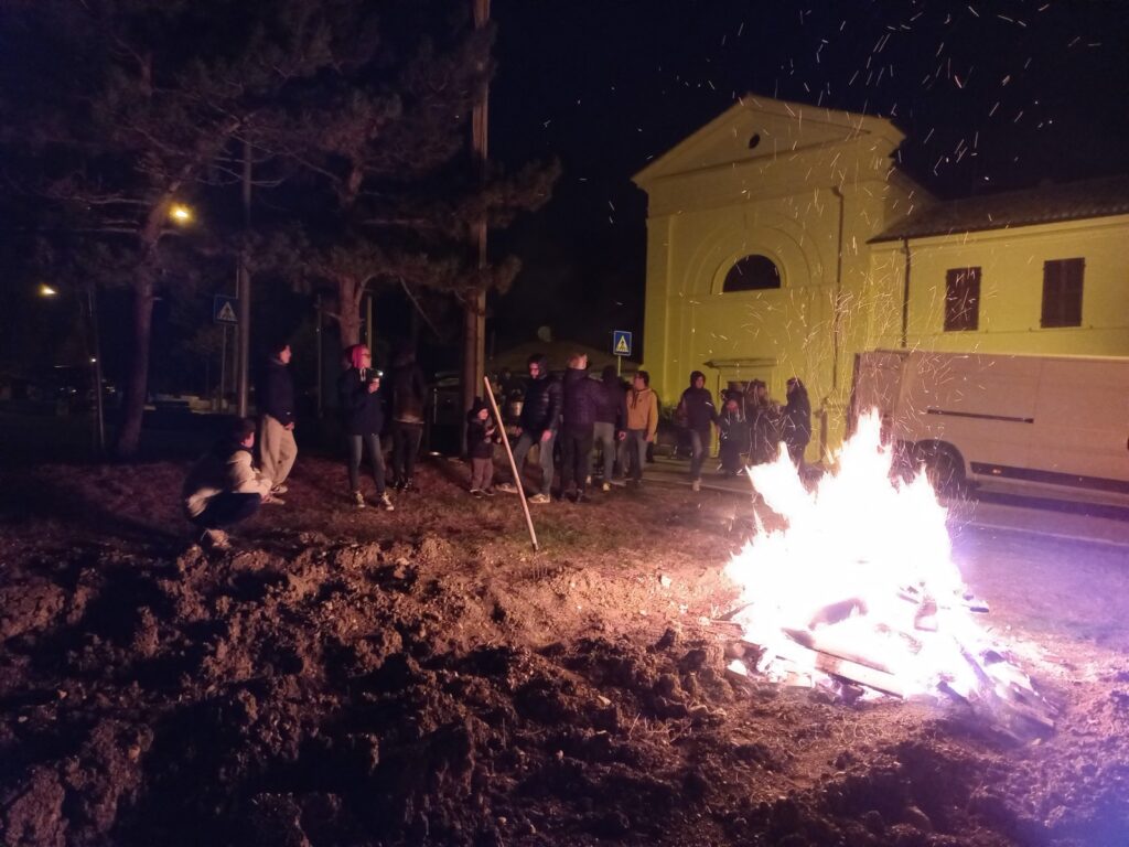 Il falò d’inverno accende il cuore della frazione, tra vin brulé, castagne e la gioia di stare insieme in una sera d’inizio dicembre.